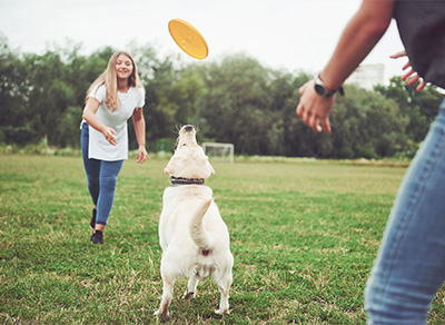 Walking, jogging and playing games all have added benefits beyond weight loss. Many owners of hyper or “high-strung” dogs find that regular exercise results in calmer, happier, and better behaved pets. Exercising with a dog is also a great way to relieve your own stress and help you and your dog relax, connect, and enjoy one another.